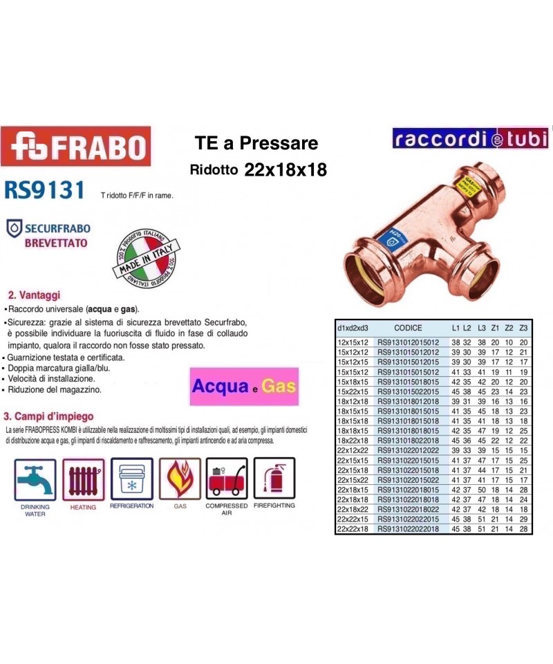 Geeignet für die Verbindung mit harten, halbharten und geglühten Kupferrohren nach EN-1057