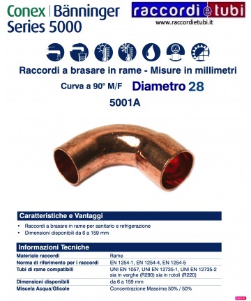 Die Verbindungen der Serie 5000 werden gemäß UNI EN 1254-1, UNI EN 1254-4 und UNI EN 1254-5 produziert und sind geeignet für die Herstellung von Verbindungen in Kombination mit Kupferrohren, die nach UNI EN 1057, UNI EN 12735-1 und UNI EN 12735-2 hergestellt werden. Sie sind geeignet für die Verwendung in Trinkwasser- und Warmwasser-Förder- und Verteilungssystemen, Heizungs- und Kühlungssystemen, sowie bei brennbaren Gasen und Kältemitteln.