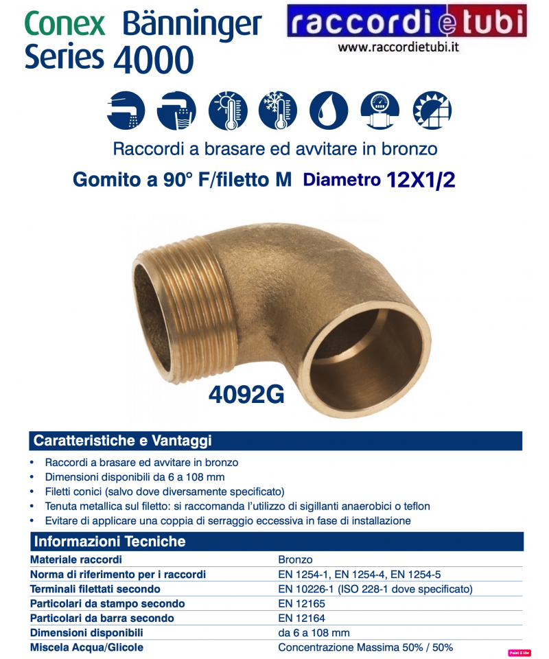 Die Fittings der Serie 5000 werden gemäß UNI EN 1254-1, UNI EN 1254-4 und UNI EN 1254-5 hergestellt und sind geeignet für die Verbindung mit Kupferrohren, die nach UNI EN 1057, UNI EN 12735-1 und UNI EN 12735-2 produziert werden. Sie sind für den Einsatz in Systemen zur Zuleitung und Verteilung von warmem und kaltem Wasser, Heizung und Kühlung, brennbaren Gasen und Kühlmitteln geeignet.