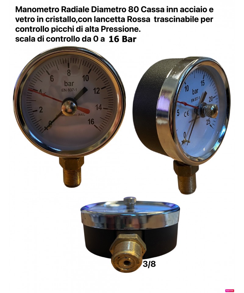 RADIALMANOMETER Ø80 GEHÄUSE AUS STAHL UND GLAS, MIT ABZUGSPINNE ZUR ÜBERWACHUNG VON HOCHDRUCKSPITZEN