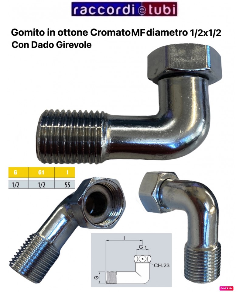 VERCHROMTE BRASSVERBINDUNG 1/2X1/2 MF MIT DREHBARE MUTTER