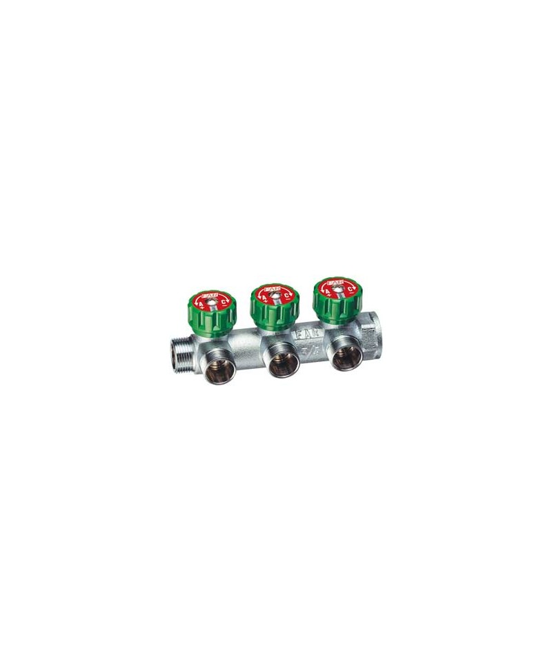 Verchromter modularer Verteiler 3650 1. • Körper aus Messing CB753S • Seitenanschlüsse: 3/4”-1”-1”1/4 männlich - weiblich • Abzweigungen: 1/2” weiblich • Abstand der Abzweigungen: 50mm