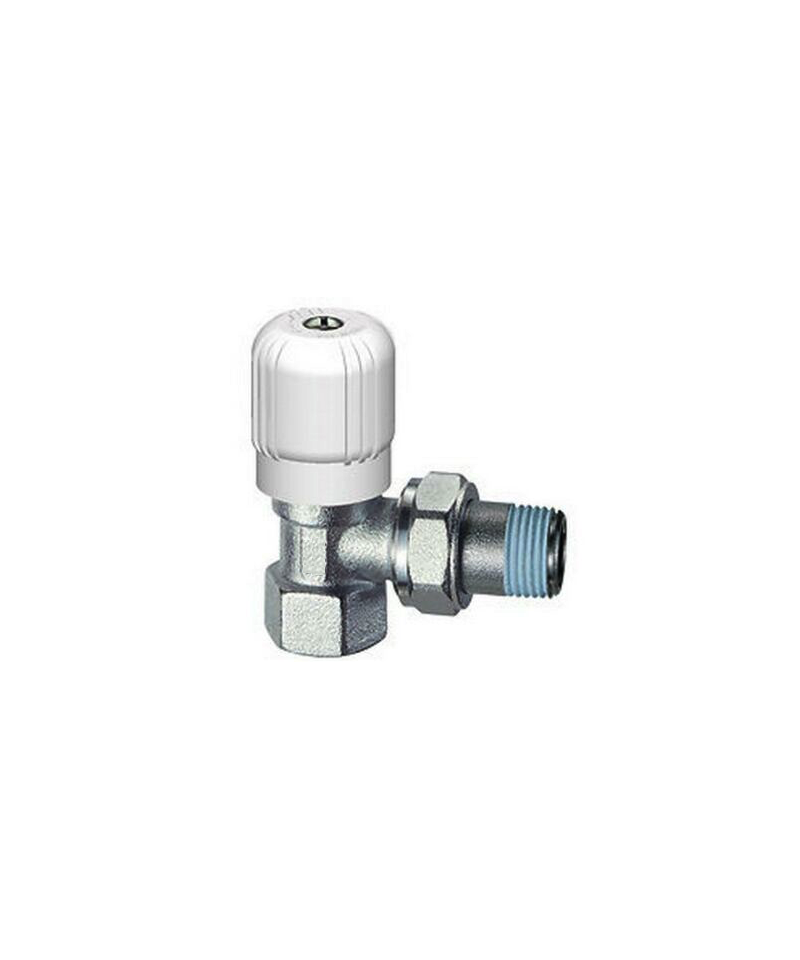 Verchromtes LadyFAR-Ventil mit hochglänzender Oberfläche, links, thermostatgesteuert für Heizkörper, vorbereitet für den Einbau von Thermostat- oder Elektrothermageräten, mit 3/8”- und 1/2”-Anschluss für Kupfer-, Kunststoff- und Mehrschichtrohre, Ventilansatz mit EPDM-Dichtung, Dichtung zwischen Ventilansatz und Gehäuse aus HPF, wechselbare Nut aus Edelstahl mit doppelt ausgelegtem O-Ring für die Dichtung, ABS-Knauf und ausgestattet mit hochglänzender Kappe. Maximalbetriebstemperatur 95°C. Maximale Betriebsdruck 10 bar.