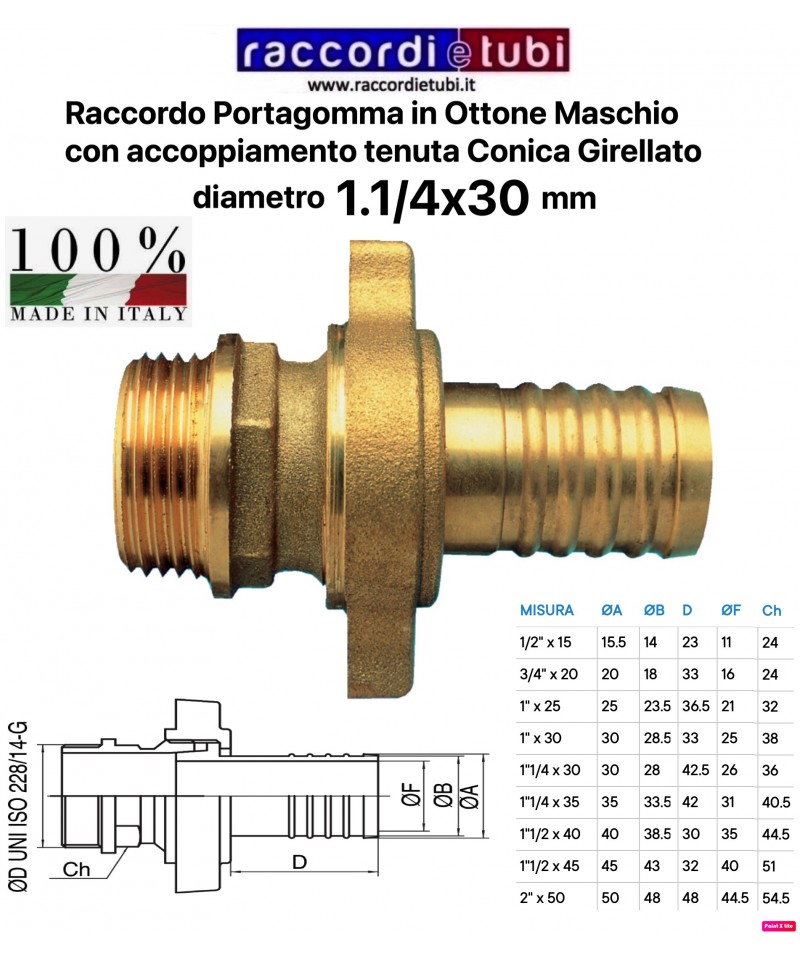 Messing-Wasserschlauchanschluss für GAS METHAN DN.14