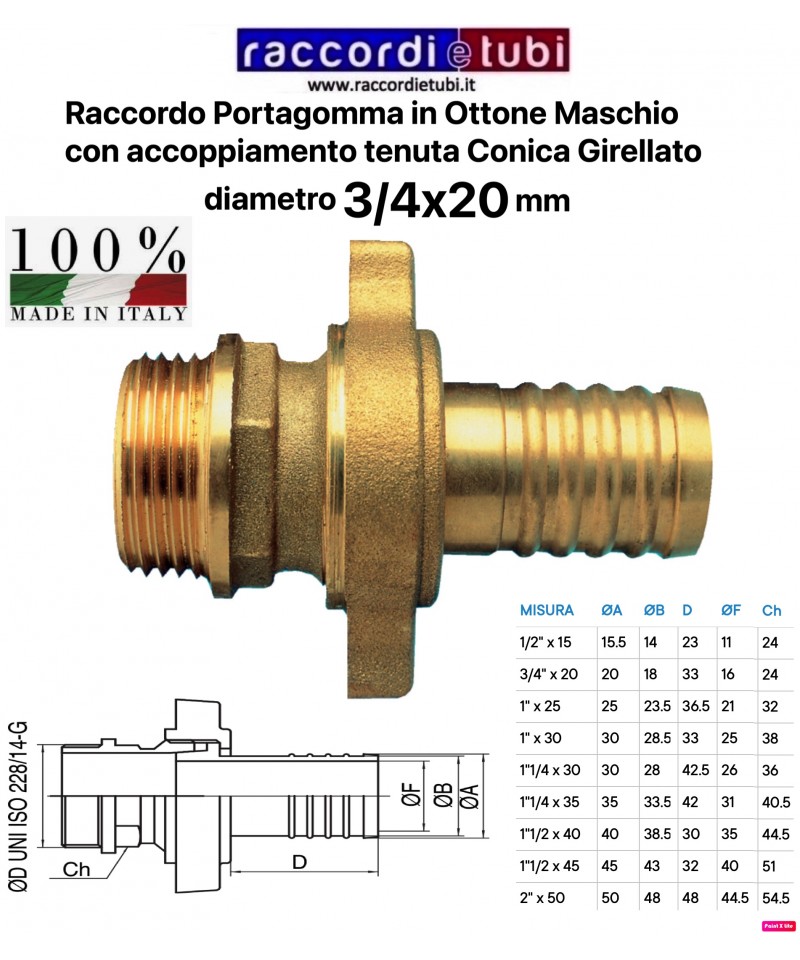MESSING SCHLAUCHANSCHLUSS MÄNNLICH 2''x50mm