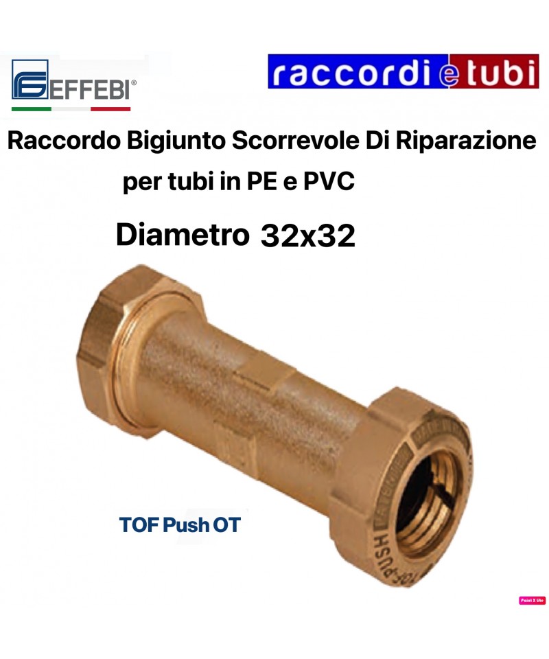 Der Kegel passt sich den Toleranzen des Rohres an, einschließlich der Ovalisierungen, gewährleistet eine perfekte hydraulische Dichtung dank seiner proportionalen Festigkeit und wird zu einer gültigen Unterstützung für den mechanischen Dichtungsring. Der mechanische Dichtungsring passt sich, dank seiner speziellen Konfiguration, den Toleranzen des Rohres an und gewährleistet eine perfekte Fixierung am Rohr selbst. Für Rohre aus PE 100 und in Gasleitungen steht eine innere Verstärkung (Buchse) zur Verfügung, die das Rohr versteift. Das TOF PE-Fitting mit der speziellen Verstärkungsbuchse ist geeignet für PE-X-Rohre.