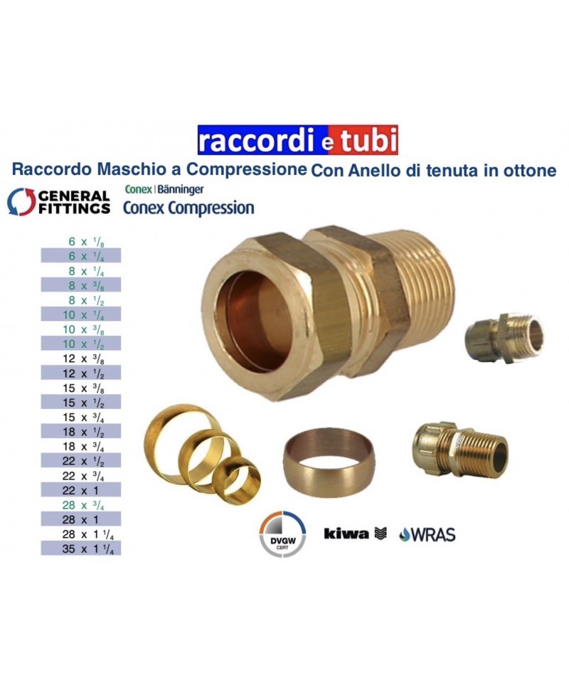 Verschraubungen aus Messing mit Spitze. Verwendung bei der Erstellung von Anlagen zur Bereitstellung und Verteilung von Trinkwasser (warm und kalt) und Brennstoffen.