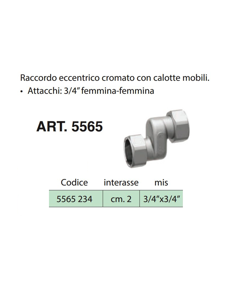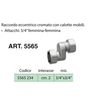 Verchromtes exzentrisches Verbindungselement mit beweglichen Kappen. • Anschlüsse: 3/4” weiblich-weiblich