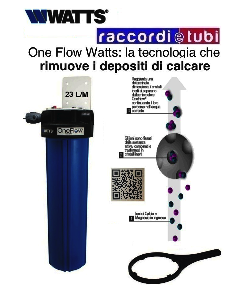 OneFlow®ist ein Kalkschutzsystem, das für offene Kreislaufsysteme geeignet ist, die Wasser mit den in den Produktdaten beschriebenen chemischen Eigenschaften verwenden und für Systeme zur Herstellung von Warmwasser. Die Behandlung ist physikalischer Art und verwendet eine Technologie der Kristallisation von Calcium- und Magnesiumionen (Template Assisted Crystallization - TAC)