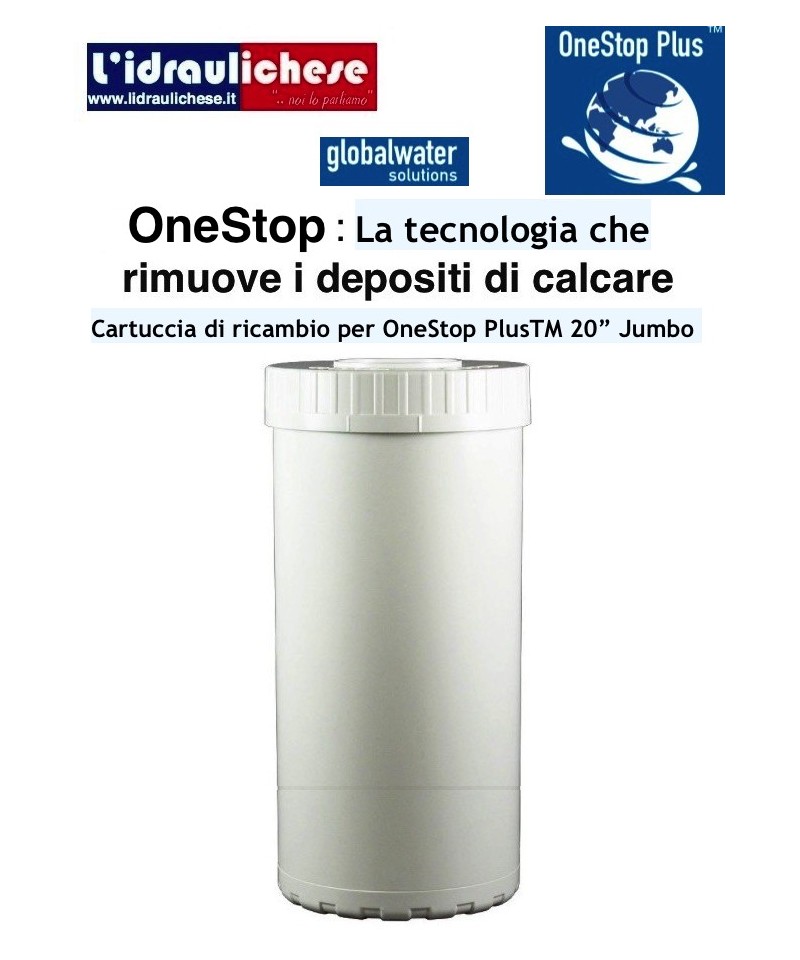 OneStop PlusTM wurde entwickelt, um Rohrleitungen vor der Bildung von Kalkablagerungen zu schützen und um teilweise Schwermetalle sowie Chlor, das im Wasser gelöst ist, zu entfernen. Es kann als Gerät am Eingang des hydraulischen Kreislaufs sowohl für Warmwasser als auch für Kaltwasser installiert werden, oder direkt vor den Geräten, die behandeltes Wasser benötigen (Sauna, Waschmaschine, Geschirrspüler usw.).