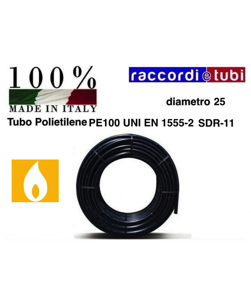 Verteilung von unter Druck stehendem Brenngas, die alle der Norm UNI EN 1555-2 entsprechen.