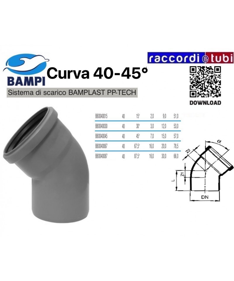 Einfach und schnell zu installierendes System dank der Steckverbindung, die durch eine elastomere Dichtung gesichert ist. Die Verbindung mit einer Muffe gewährleistet den angemessenen Raum für eventuelle Ausdehnungen der Installation mit einer zuverlässigen und langfristig garantierten Abdichtung. Das BAMPLAST PP-TECH Polypropylen-System ist mit der Verbindung zu anderen Kunststoffmaterialien in PP/PE-HD/PVC in Standarddurchmessern kompatibel.