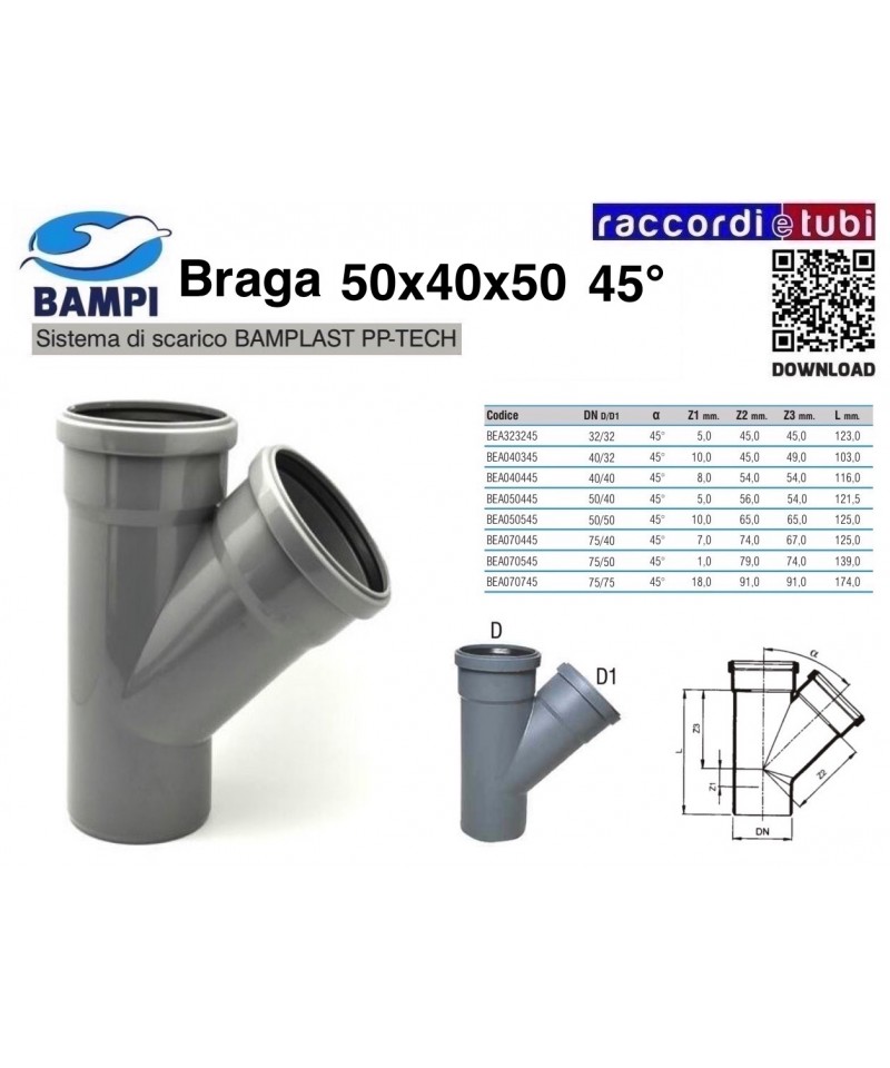 BRAGA A INNESTO PP-H/MC DIAM.110X50X110X50 45°