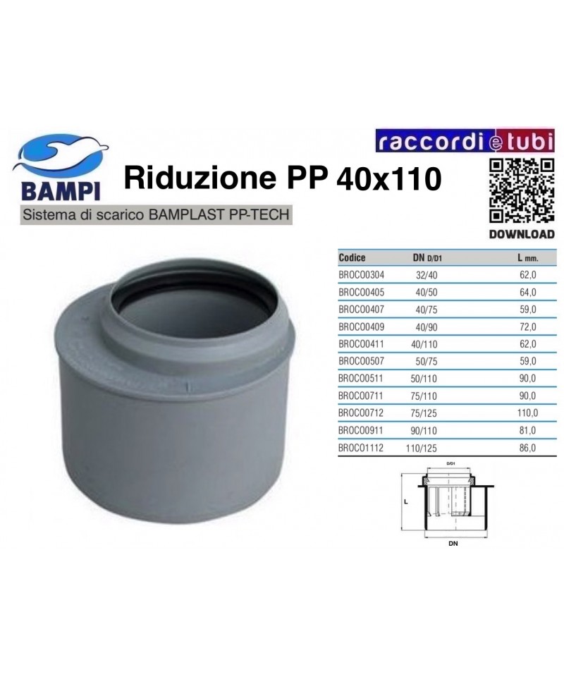 Einfach und schnell zu installierendes System dank der Steckverbindung, die durch eine elastomere Dichtung gesichert ist. Die Verbindung mit einer Muffe gewährleistet den angemessenen Raum für eventuelle Ausdehnungen der Installation mit einer zuverlässigen und langfristig garantierten Abdichtung. Das BAMPLAST PP-TECH Polypropylen-System ist mit der Verbindung zu anderen Kunststoffmaterialien in PP/PE-HD/PVC in Standarddurchmessern kompatibel.