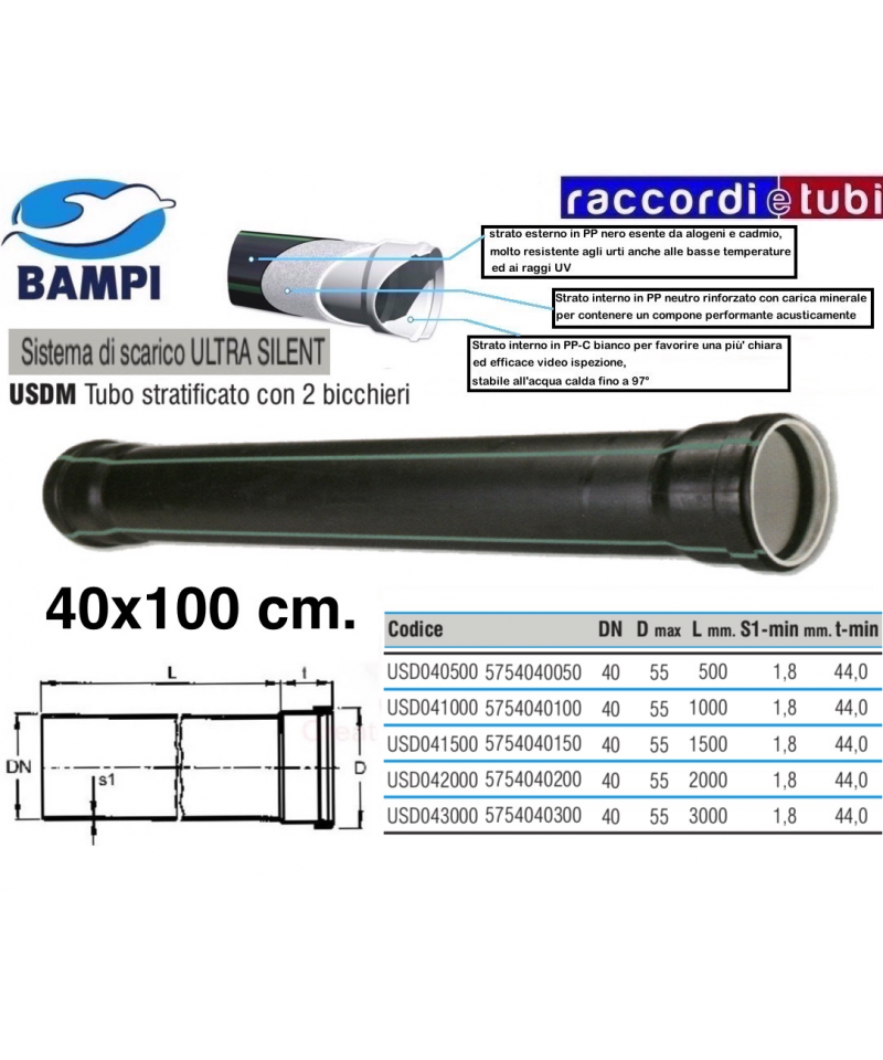 Ein innovatives Abflusssystem aus polypropylene (PP) in der Farbe Schwarz RAL 9005, coextrudiert in 3 Schichten. Die Produktreihe mit Durchmessern von 32 bis 200 mm besteht aus Rohren und Verbindungsstücken, die mit mineralischen Füllstoffen (MD) verstärkt sind. Diese verleihen dem System akustische Isolierung, Stoßfestigkeit, Korrosions- und Abriebfestigkeit sowie Widerstand gegen chemisch gelöste Stoffe in kommunalen und industriellen Abflüssen.