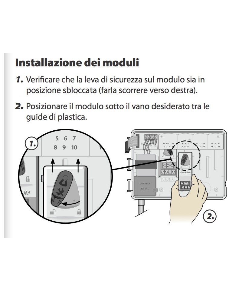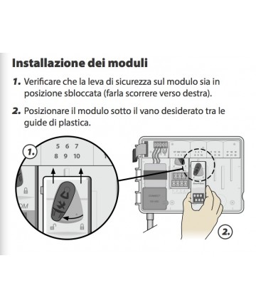 Das Produkt sollte als Zeitschaltuhr für die automatische Steuerung der Aktivierung von 24 V AC Elektromagnetventilen für die Bewässerung verwendet werden, wie im Handbuch beschrieben.
