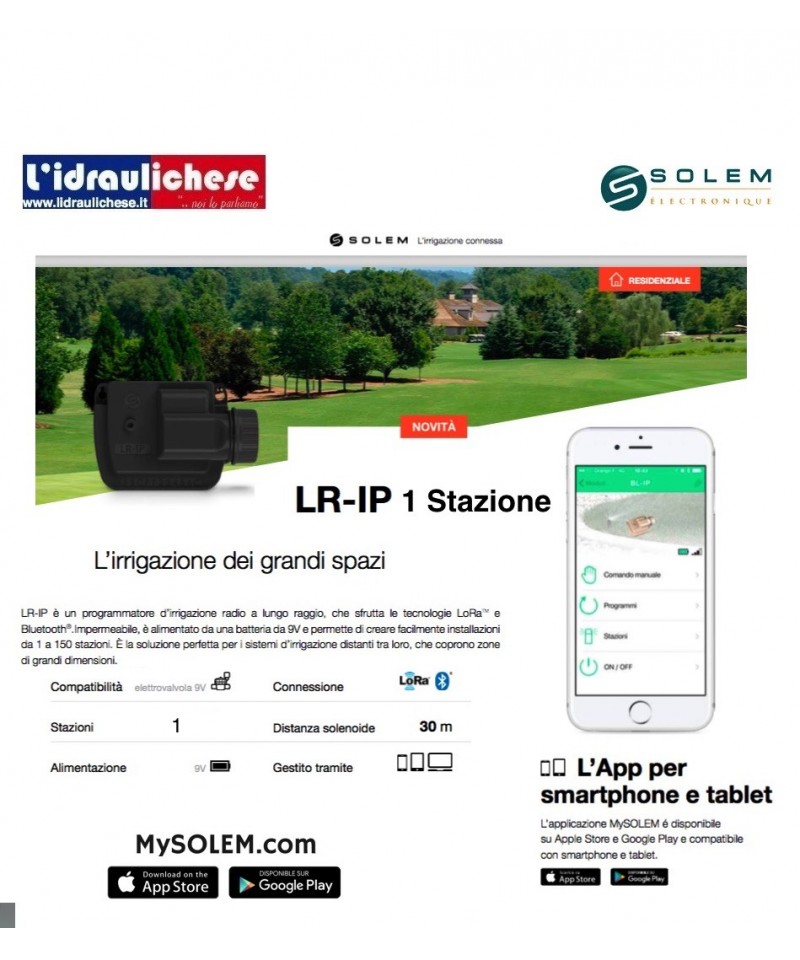 TECHNISCHE SPEZIFIKATIONEN • Anzahl der Programme 1 • Bewässerungszeiten von 1 Min bis 240 Min • Anzeige der Startzeit • Anzeige der nächsten Bewässerung • Maximal 4 tägliche Starts • Mindestens 1 Start alle 15 Tage • Anzeige von leeren Batterien • Sichtanzeige der verbleibenden Bewässerungszeit • Anzahl der Sektoren 1 • Anschluss 3/4"-1" • Ausgang 3/4"M