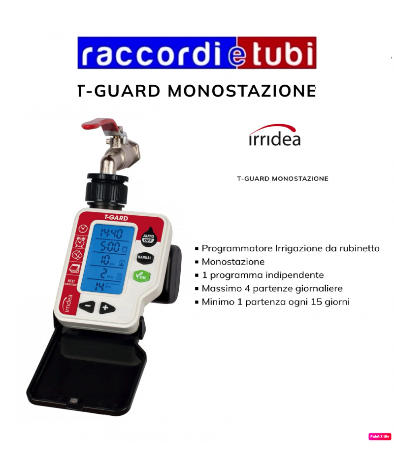 Automatischer Zweikanal-Programmierer. Führen Sie bis zu drei Bewässerungen pro Tag für jede Leitung durch. Verfügt nur über drei Tasten für eine einfache Programmierung. Das Großdisplay kommuniziert klar mit Symbolen und Zahlen alle notwendigen Informationen. Bewässerungszeiten von einer Minute bis zu 23 Stunden und 59 Minuten. Wöchentliche Programmierung mit Ausschluss einzelner Tage. Ermöglicht die Anzeige der eingegebenen Programme und deren Löschung. Manuelle Funktion von 15 bis 60 Minuten einstellbar. Einstellung des aktuellen Tages. Ausgestattet mit einem waschbaren Filter. 3/4" (20-27 mm) Wasserhahnanschluss. Arbeitet mit einer 9 V Alkalibatterie, die für die gesamte Saison ausreicht (digitale Ladezustandsanzeige). Elektronischer Teil ist regen- und feuchtigkeitsbeständig. Anschluss an den Regen-Sensor Rain Sensor für eine absolut wassersparende Bewässerung. Betriebsdruck von 0,5 bis 10 bar. Zu 100 % kontrolliert und getestet.
