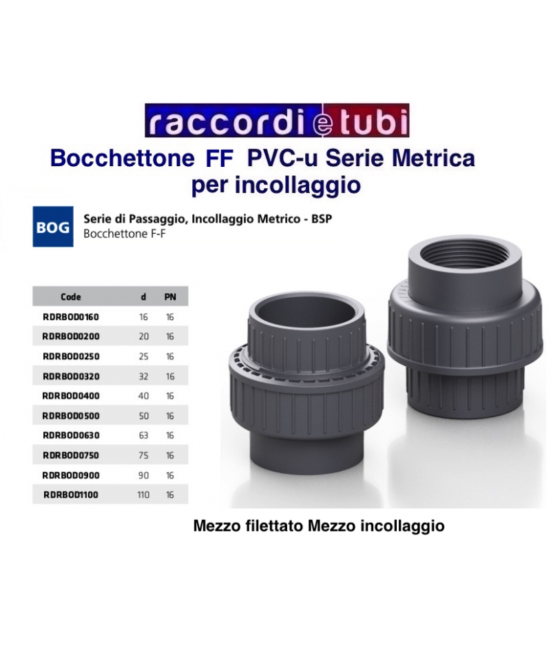 BOCCHETTONE GIUNTO TRE PEZZI PVC INCOLL.FF 1/2x20