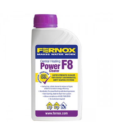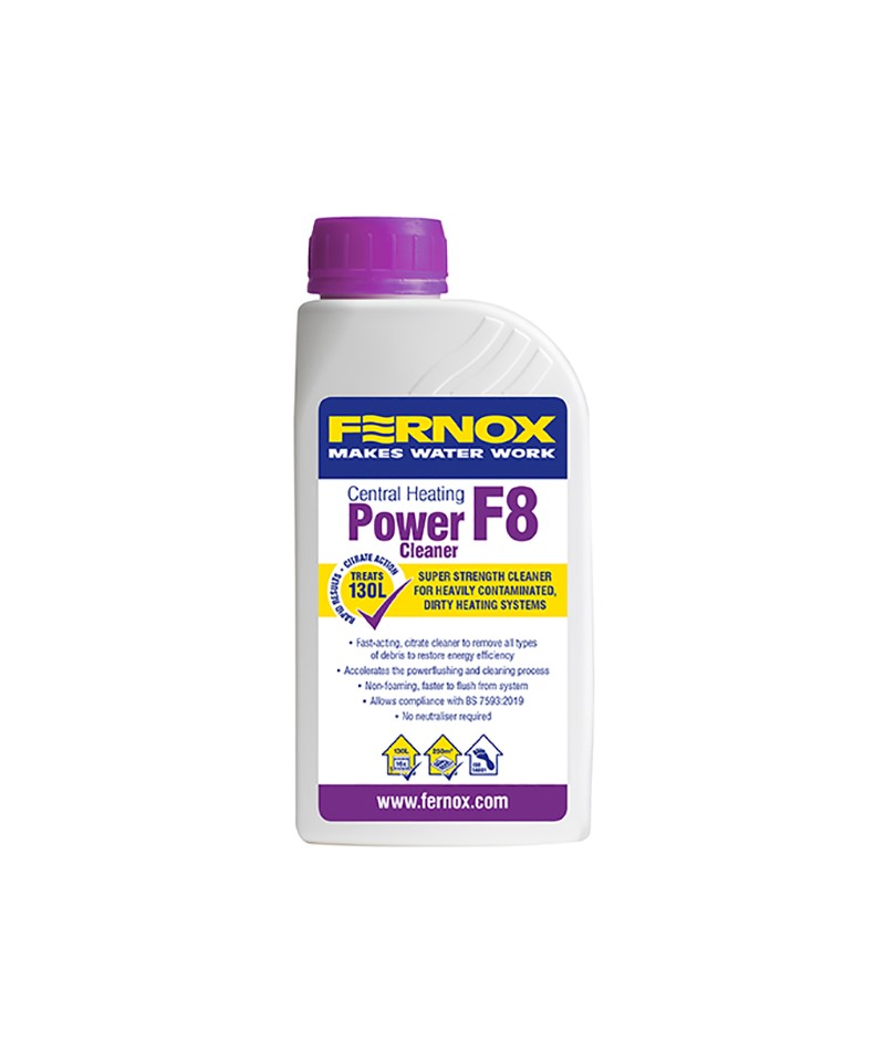 Fernox Power Cleaner F8 ist ein super starker und schnell wirkender Reiniger für stark verschmutzte, schmutzige und problematische Zentralheizungsanlagen. Seine neutrale pH-Citratformulierung entfernt Ablagerungen, Schlamm und Verkrustungen, ohne dass eine Neutralisierung erforderlich ist. Es hilft, die Lebensdauer eines Systems zu verlängern und die Heizleistung gemäß BS 7593:2019 und den besten Praktiken wiederherzustellen. Eine 500-ml-Flasche Power Cleaner F8 reicht aus, um eine große Zentralheizungsanlage (130 Liter oder 16 Heizkörper) zu reinigen, die 97 % des Wohnimmobilienbestands im Vereinigten Königreich abdeckt.
