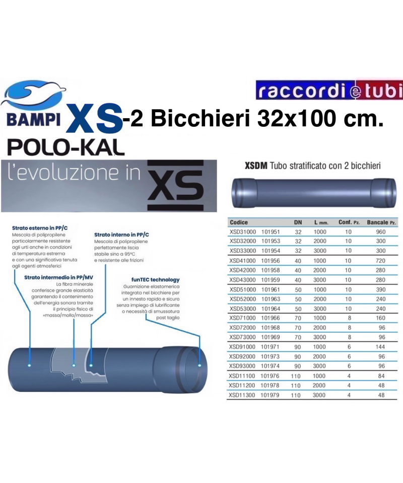 Eine absolute technologische Neuheit für die Installation von Abwassersystemen! POLO-KAL XS ist das erste schallgedämmte Abflusssystem aus Polypropylen (PP) in der blauen Farbe RAL 5014, coextrudiert in 3 Schichten mit „FunTEC“-Verbindung. Es handelt sich um eine exklusive Produktionstechnologie, die es ermöglicht, die Dichtungsmanschette direkt im Becher zu formen. Dies bietet zahlreiche Vorteile: