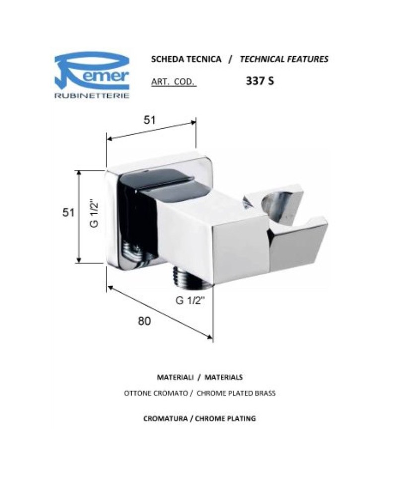 Wasseranschluss mit „runder“ Form zur Verbindung mit dem flexiblen Schlauch des Duschkopfes: verchromtes Metall, 1/2" männliche Anschlüsse Durchmesser 50 mm