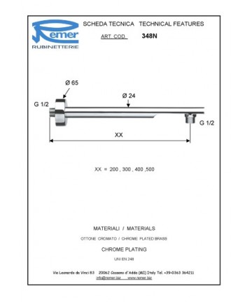 Maßnahmen:Vorsprung mm.360 Durchmesser Arm mm.18 Durchmesser Anschluss 1"1/2 Durchmesser Anschluss 2"1/2 Durchmesser Rosette mm.55