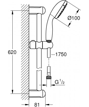 Set bestehend aus: Metall-Duschstange D.22 mm. von 60 cm. mit