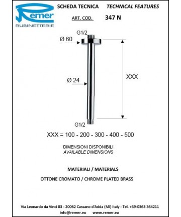 Maßnahmen:Vorsprung mm.360 Durchmesser Arm mm.18 Durchmesser Anschluss 1"1/2 Durchmesser Anschluss 2"1/2 Durchmesser Rosette mm.55
