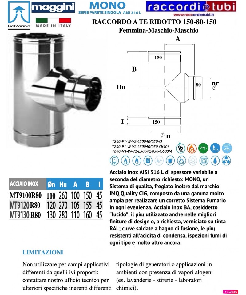Edelstahl AISI 316 L mit variablem Wandstärken, abhängig vom geforderten Durchmesser: MONO, ein Qualitätssystem, zusätzlich mit dem IMQ Quality CIG Zeichen ausgezeichnet, umfasst ein sehr breites Sortiment zur Schaffung eines korrekten Abgassystems für jeden Anlass. Edelstahl BA, auch als "glänzend" bekannt, der am häufigsten auch in den besten Designoberflächen verwendet wird oder auf Anfrage in RAL-Farbe beschichtet; geschweißte Bögen im Schmelzbad, die beständigsten gegen die Acidität von Kondensat, Abgasinspektionen aller Art und vieles mehr: Fragen Sie unsere Büros nach weiteren Informationen.