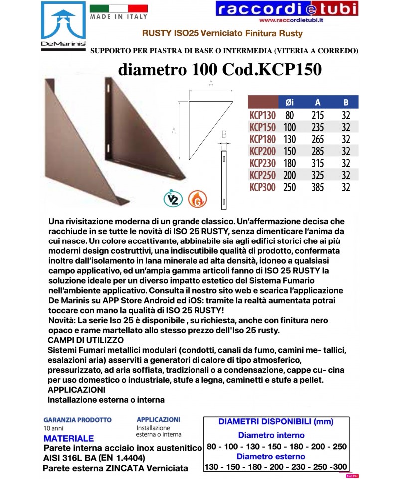 Modulare starre Elemente doppelte Wand System ISO 25 RUSTY mit Qualität und Oberflächenverarbeitung der Außenwand lackiert "Rusty" für De Marinis S.r.l., hergestellt mit einer Innenwand aus rostfreiem Stahl AISI 316 L mit einer Mindestdicke von 0,4 mm und einer Außenwand aus verzinktem Stahlblech mit einer Dicke von 0,5 mm, die den durch die europäische CE-Kennzeichnung gemäß der Norm EN 1856-1 2009 festgelegten Standards entsprechen und die Anforderungen der Klassifizierung T200-P1-W-V2-L50040-O40 für Anwendungen mit Dichtung erfüllen; alternativ, für Anwendungen ohne Dichtungsring, die der Klassifizierung T600-N1-W-V2-L50040-G85 gemäß den oben beschriebenen Standards entsprechen. Die Isolierung besteht aus hochdichtem Mineralwolle mit einer Dicke von 25 mm, gepresst und zwischen den Wänden ohne Verbindungselemente (Wärmebrücke) eingebracht.