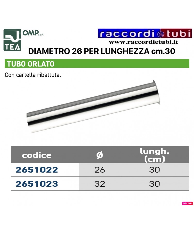 Verchromtes Messingrohr mit einem Durchmesser von mm.26 und einer Länge von mm.300 "für Ablauf-Siphons"
