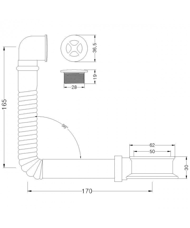 UNIVERSELLE BIDET-WASCHBECKEN-AUSLASSSYSE ''NAVARRO'' 11/4''x60mm