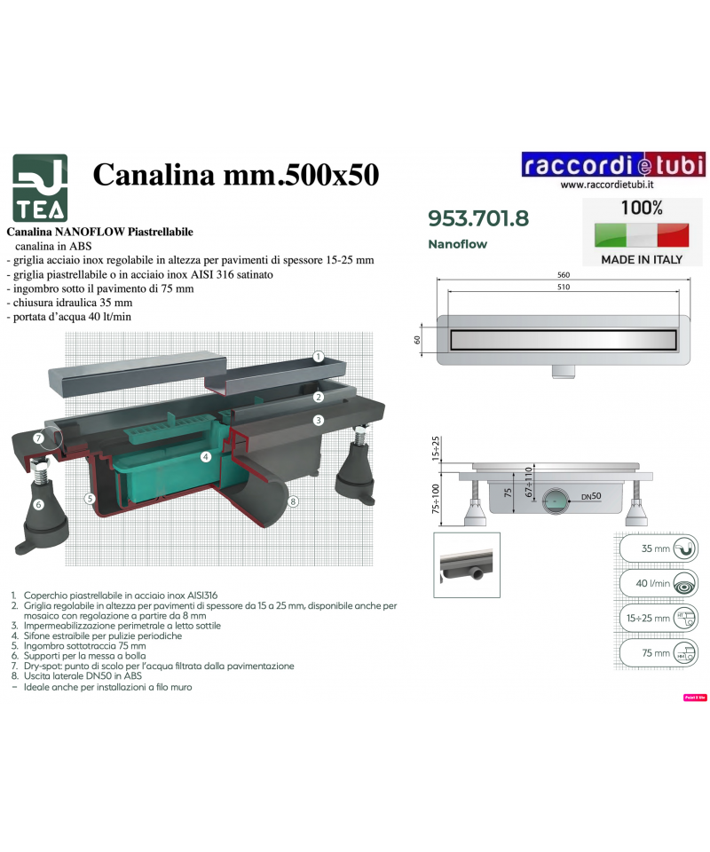 DUSCHRINNE 300X50mm TEA OMP ''NANOFLOW''