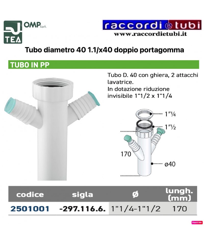 ZWEIFACHVERLAENGERUNG IN PP40X40 MÄNNLICH WEIBLICH LÄNGE mm.230