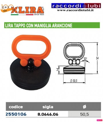 VERSCHLUSS MIT ORANGENEM KEGELGRIFF ÄUSSERER MAXIMALDIAMETER 50,5