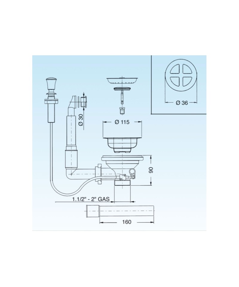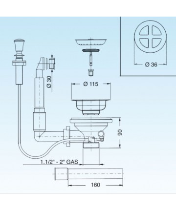 MESSING/INOX ABFLUSS FÜR SPÜLE 1.1/4X80 ART.34.625.5