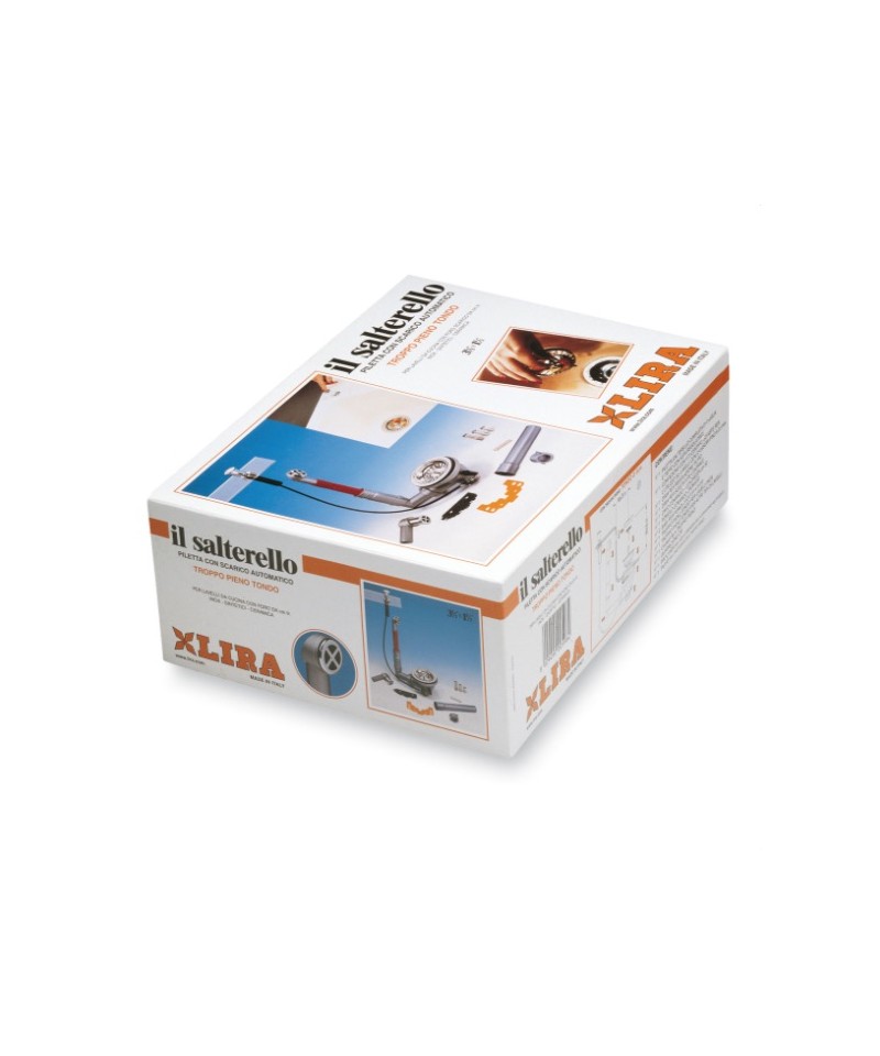 Sifon Typ "M" für Keramikwaschbecken mit einem Becken, komplettes Set mit Ablauf (Edelstahl 18/8 - Ø 80x52), Stopfen-Griff