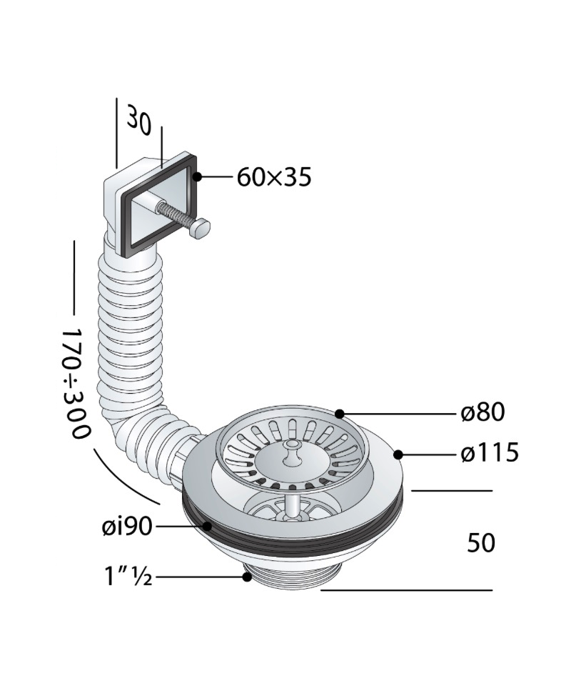 PILETA LIRA BASKET DURCHMESSER 3"1/2X1.1/2 MÄNNLICH