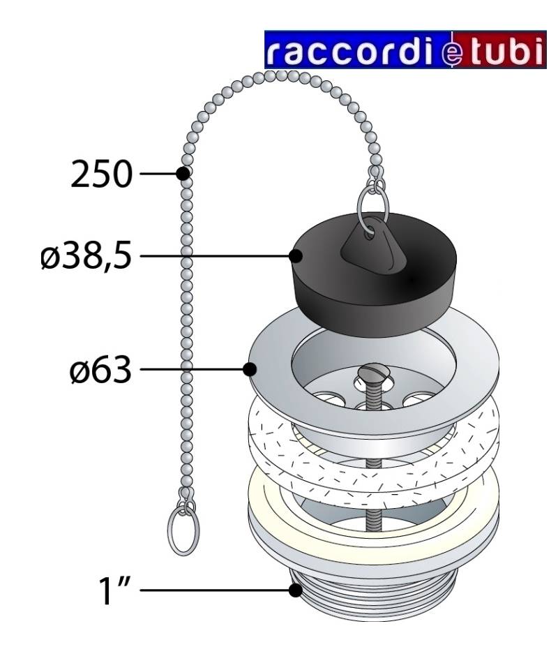 PP-ABLAUFVENTIL FÜR EDELSTAHLSPÜLEN MIT EINEM DURCHMESSER VON 60, ÜBERLAUF, STOPFEN UND KETTE 1.1/2