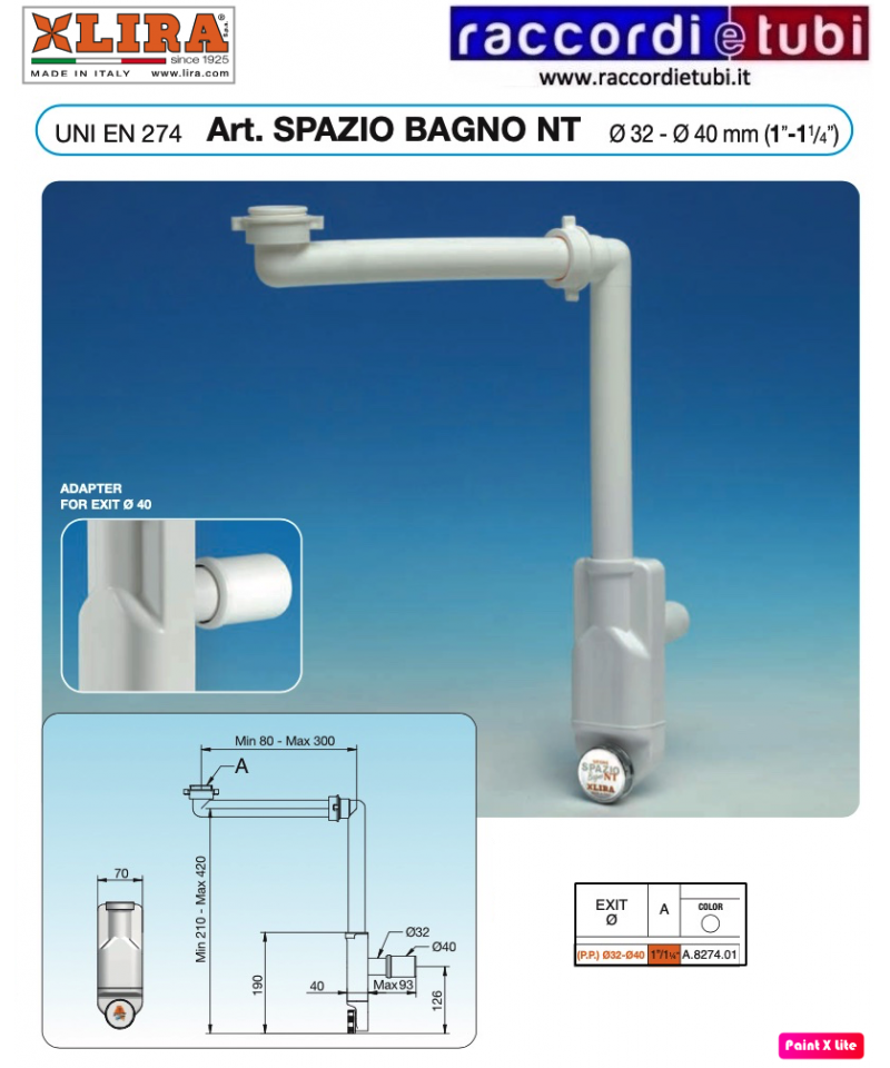 Der ø 32 wird für Waschbecken - Bidets empfohlen, während der ø 40 für Küchenspülen oder Waschbecken in der Waschküche geeignet ist.