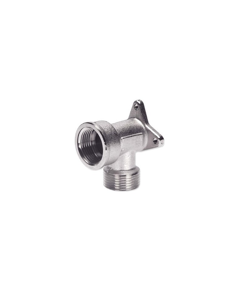 Eckverbindung mit M/F-Befestigung aus vernickeltem Messing mit männlichem ISO 228 G-Gewinde mit flacher Auflage (B) und weiblichem ISO 228 G-Gewinde (A)