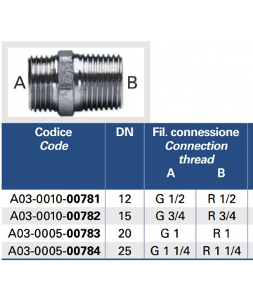 Nippelverbindungen M/M aus vernickeltem Messing mit ISO 228 G gerade Innengewinde (A) und EN 10226 R konisches Innengewinde (B)