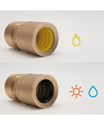 Schnellanschlüsse aus Messing mit doppeltem O-Ring, geeignet für den Transport von Trinkwasser und beständig gegen hohe kontinuierliche Betriebstemperaturen, zur Verbindung von CSST-Rohren mit demselben Durchmesser
