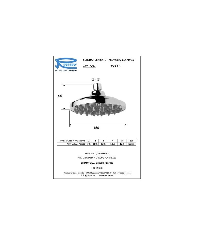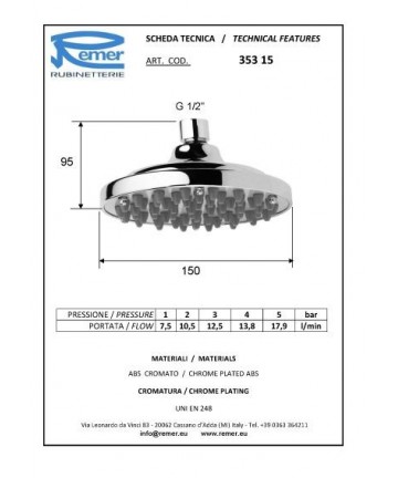 Maßnahmen:Vorsprung mm.360 Durchmesser Arm mm.18 Durchmesser Anschluss 1"1/2 Durchmesser Anschluss 2"1/2 Durchmesser Rosette mm.55