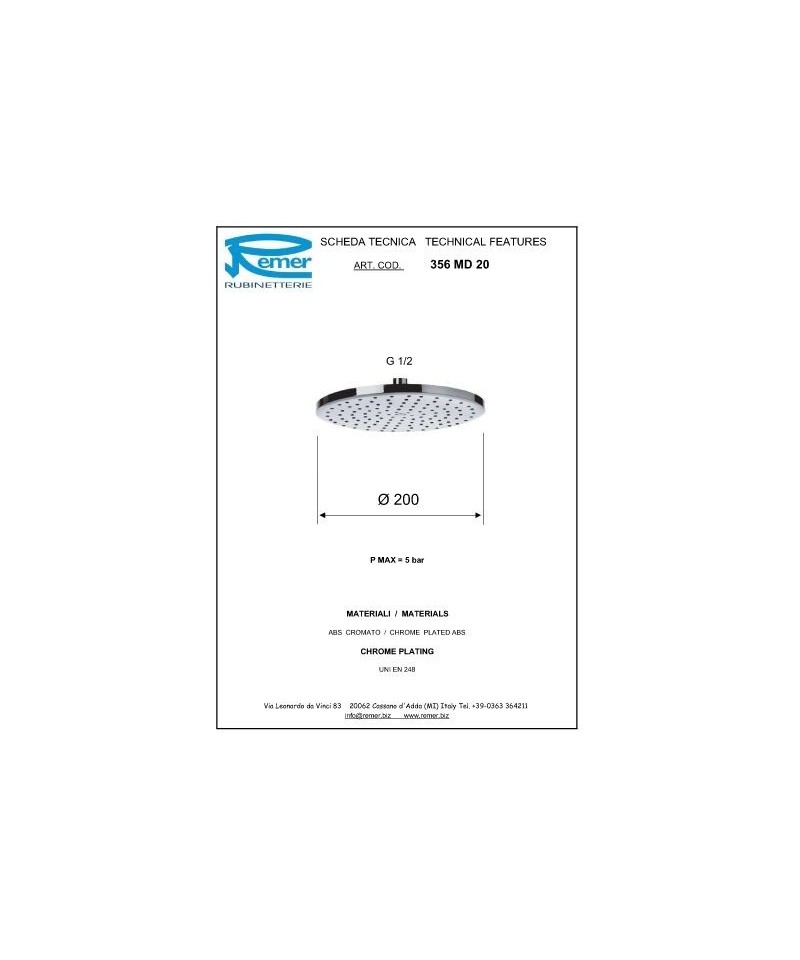 | MINIMALISTISCHER DUSCHKOPF Ø 20 cm aus luxuriösem ABS, verchromt, mit 50 selbstreinigenden und kalkabweisenden Silikondüsen |