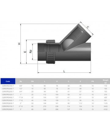 Kugelrückschlagventil mit Gewindeanschluss für die Ableitung von Abwässern. Innengewinde 2.1/2 Vertikale Installation. Der Arbeitsdruck reicht von 0.3 bis 10 bar. Temperaturbereich der Flüssigkeit von -10 bis 80 Grad Celsius.