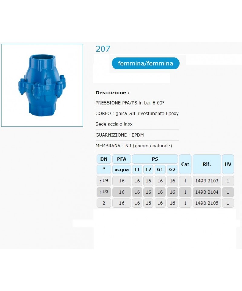 Rückschlagventil mit Klappe und Gummi-Sitz, mit F/F-Gewinde.
