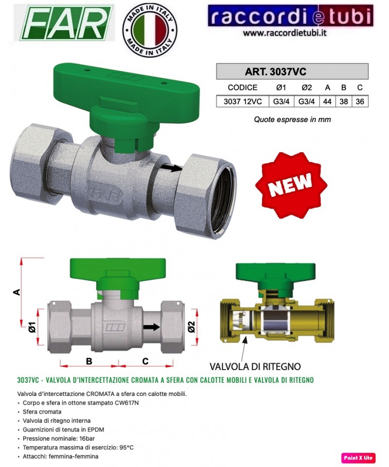 3047VC - VERCHROMTES KUGELVENTIL MIT BEWEGLICHEM KAPPELEN UND RÜCKSCHLAGVENTIL