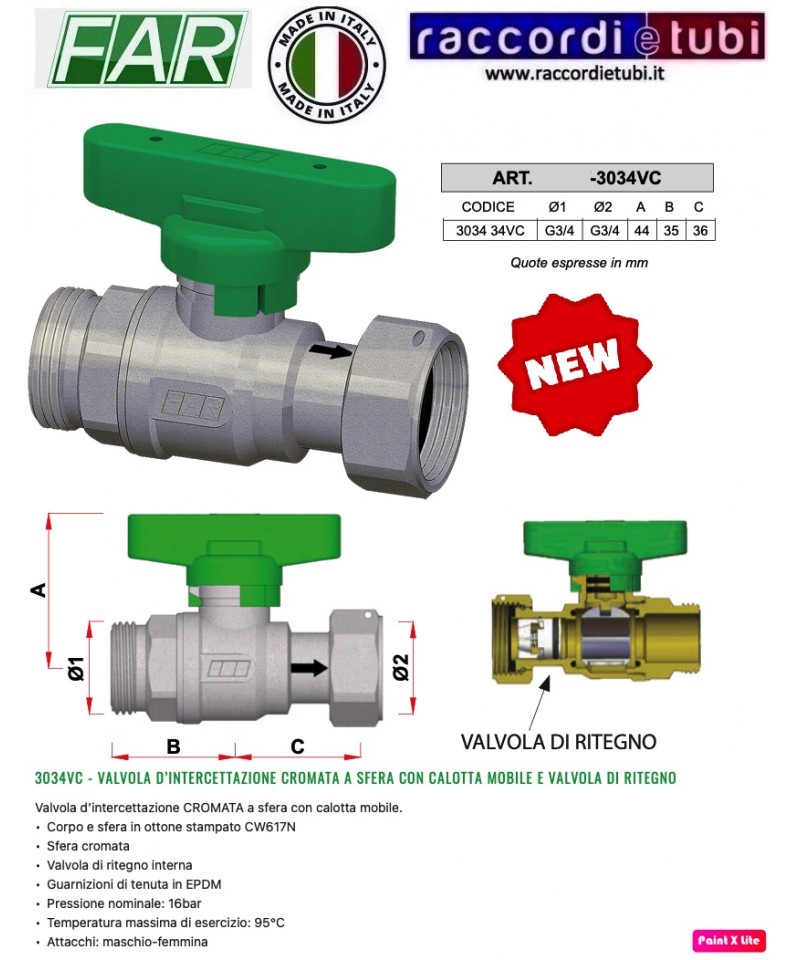 3034VC - CHROMIERTES ABSCHNEIDVENTIL MIT BEWEGLICHEM KAPPE UND RÜCKSCHLAGVENTIL